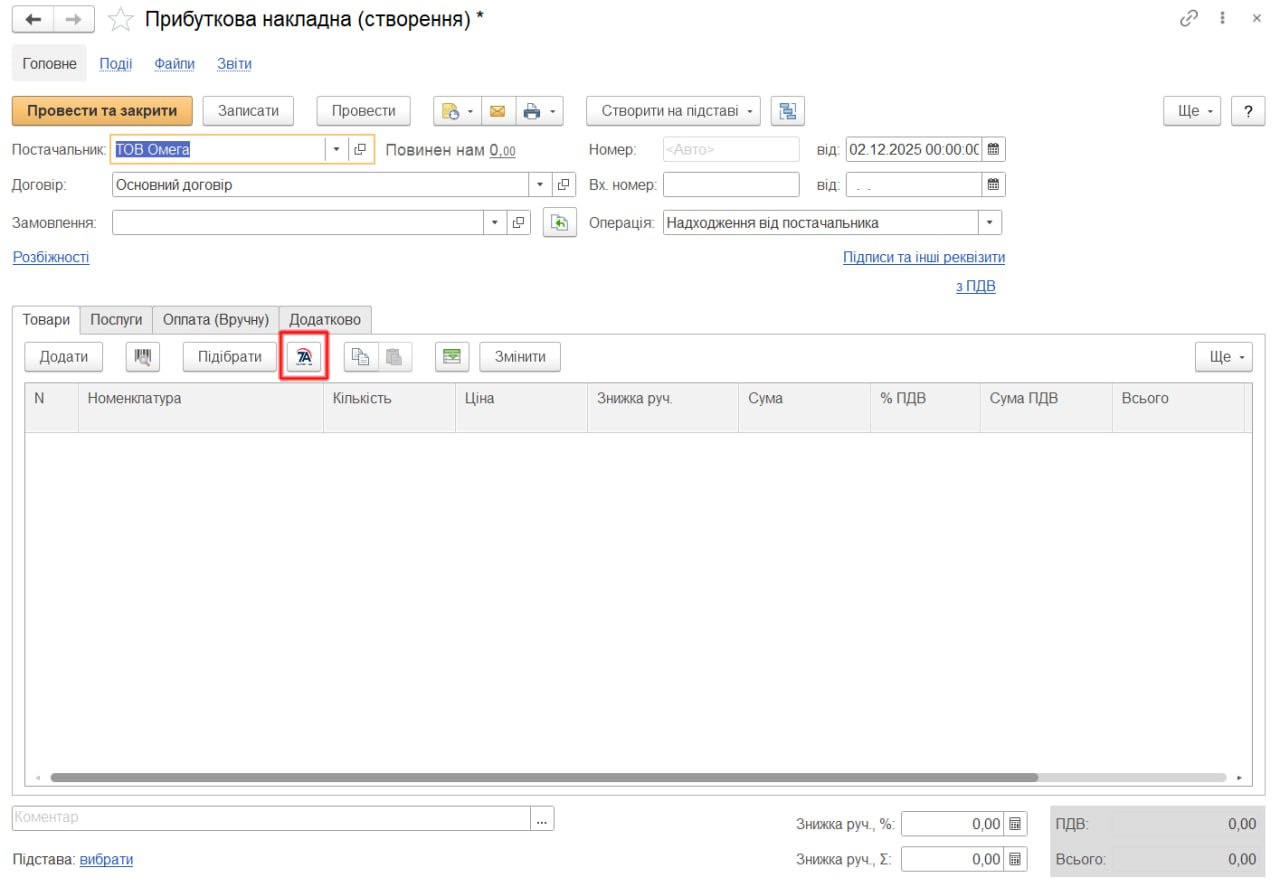 або натиснути “Створити відсутні” — програма автоматично створить нові номенклатури.